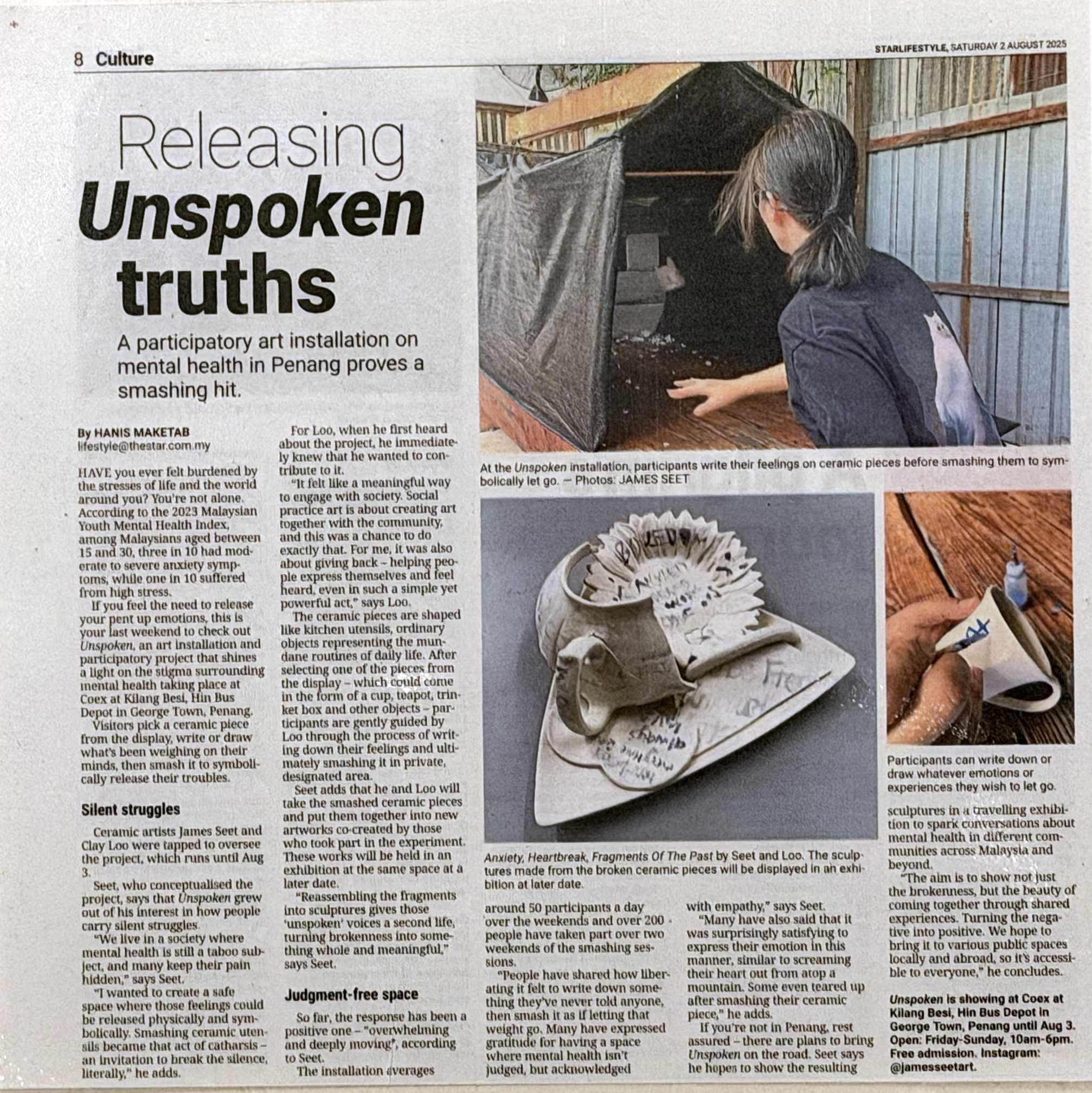 James Seet's artistry resonates with a profound commitment to societal causes. His thought-provoking installations addressing domestic violence, epitomised by his interactive ceramic artworks, have garnered accolades and media acclaim. These projects not only highlight his technical brilliance but also his conscientious engagement with pressing social issues. His influence extends beyond the art world, as evidenced by his invitation to speak at TEDx Petaling Street, a testament to his compelling socially engaged practice and his ability to inspire through art.
